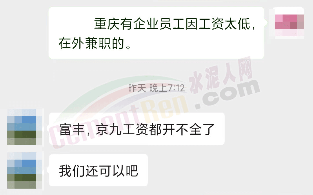 重慶某水泥企業(yè)工會負責人表示:富豐、京九工資都開不全了。
