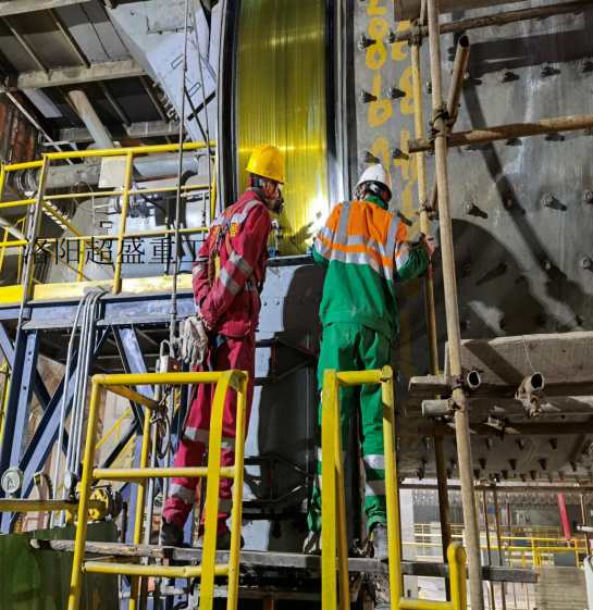 海螺另一家水泥企業(yè)實施2#磨機(jī)進(jìn)料端滑履腹板現(xiàn)場更換項目,同樣選擇超盛重工作為施工單位,共歷時 18 天,較計劃的25 天提前了7天,整個檢修過程安全、進(jìn)度、質(zhì)量受控,空載試機(jī)磨機(jī)前軸瓦溫度分別為45℃和47℃,50%裝載量運行磨機(jī)前軸瓦溫度分別為48℃和49℃,滿載運行后磨機(jī)前軸瓦溫度分別為57℃和59℃,達(dá)到了現(xiàn)場使用要求。,磨機(jī)清履溫度不得高于 60℃。