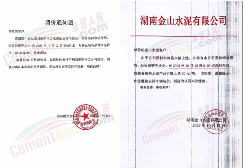 10月10日,云南富源西南水泥通知各品種水泥上調(diào)20元/噸。