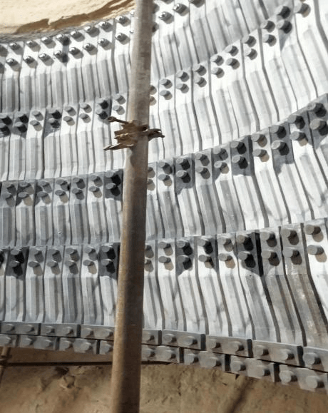 目前,市面上的預(yù)熱器C4、C5內(nèi)筒工作溫度在900℃-1100℃,最高溫度可達1300℃以上,很大程度上降低了傳統(tǒng)耐熱鋼的長期穩(wěn)定性;除此之外,預(yù)熱器內(nèi)充滿高溫堿性生料氣體和高溫含塵風(fēng)砂,使得傳統(tǒng)耐熱鋼被磨損、腐蝕,使用壽命短、更換頻繁;傳統(tǒng)陶瓷掛片在連續(xù)生產(chǎn)使用后 ,極易出現(xiàn)大面積損壞、形變、斷裂、脫落等問題。據(jù)水泥人網(wǎng)了解,江蘇凱達針對以上問題,其研發(fā)團隊經(jīng)過上百次試驗、改進、完善,采用新型納米材料生產(chǎn)的掛片區(qū)別于市面上產(chǎn)品的形狀、結(jié)構(gòu)、重量、材質(zhì)、安裝方式,能夠耐高溫達1300度以上,耐冷熱急變可達50次以上,遠超中國建材行業(yè)標(biāo)準(zhǔn);抗氧化,耐腐蝕及抗磨損性能是原有耐熱鋼的三倍以上,使用壽命是耐熱鋼的兩倍以上;對比傳統(tǒng)陶瓷掛片提高了韌性、強度、耐熱性,最大程度上保證陶瓷掛片的使用率。