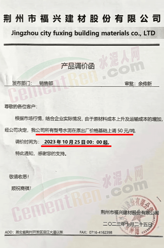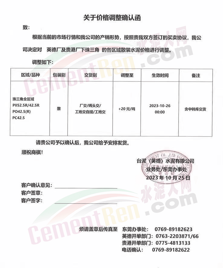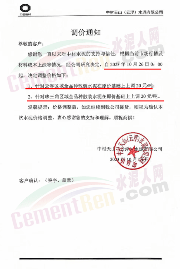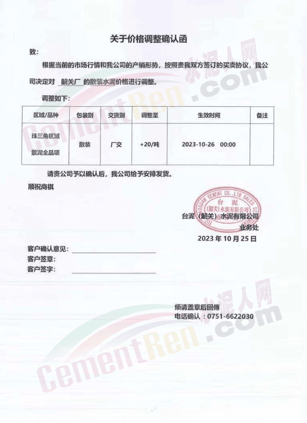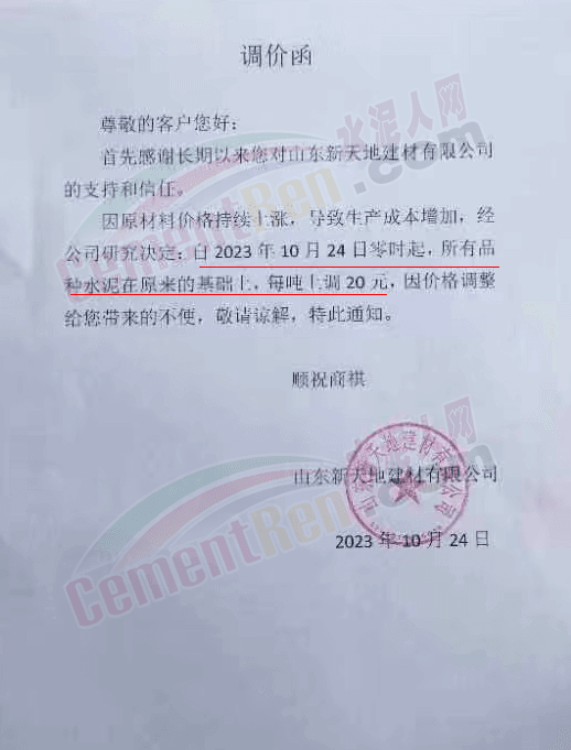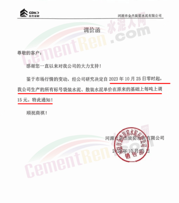 金隅冀東經(jīng)貿(mào)公司通知,由于近期原材料持續(xù)上漲,生產(chǎn)能耗成本增加,導(dǎo)致公司生產(chǎn)成本增加。為維持企業(yè)正常生產(chǎn)經(jīng)營(yíng),保障項(xiàng)目水泥供應(yīng),經(jīng)研究決定自2023年10月23日8時(shí)起,將米脂冀東水泥有限公司、山西金隅冀東環(huán)??萍加邢薰景l(fā)往榆林市、延安市所有市場(chǎng)各品種水泥出廠價(jià)上調(diào)30元/噸。