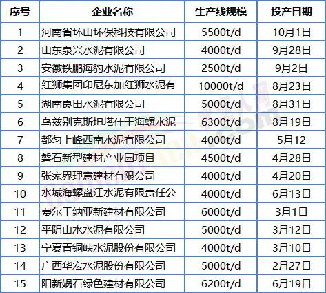 從目前各項(xiàng)目最新動(dòng)態(tài)可見,部分在建項(xiàng)目已陸續(xù)點(diǎn)火投產(chǎn),另有部分已開工在建項(xiàng)目正加緊建設(shè)中。據(jù)不完全統(tǒng)計(jì)已投產(chǎn)的15個(gè)熟料項(xiàng)目,合計(jì)產(chǎn)能達(dá)2280萬噸/年;下半年將投產(chǎn)的5個(gè)項(xiàng)目合計(jì)產(chǎn)能達(dá)810萬噸/年,合計(jì)產(chǎn)能達(dá)3090萬噸/年。