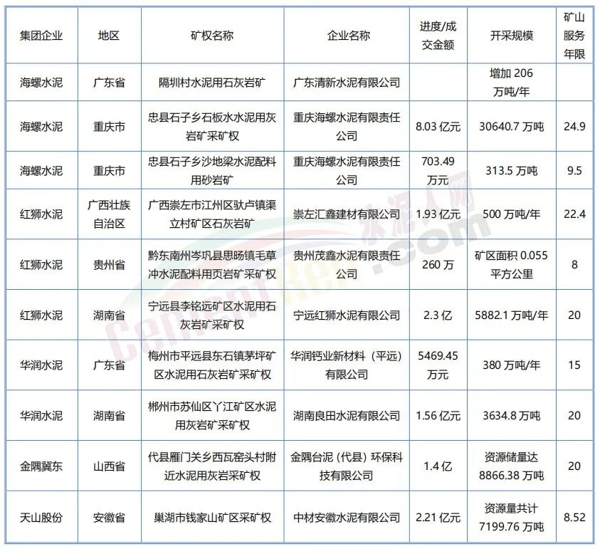 水泥行業(yè)中一直都有“得礦山者得市場(chǎng)”的說(shuō)法,近年來(lái),各大水泥集團(tuán)都曾不惜重金拿礦,甚至面對(duì)非常苛刻的條件,仍果斷出手。以“市場(chǎng)份額為基礎(chǔ),盈利為目的”的海螺水泥近期曾表示,在國(guó)內(nèi)水泥主業(yè)發(fā)展方面,公司的并購(gòu)標(biāo)準(zhǔn)中除了要求有市場(chǎng)、有回報(bào)還要求必須有資源。