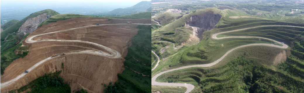 甘肅某水泥企業(yè)石灰?guī)r礦山修復(fù)前后圖片