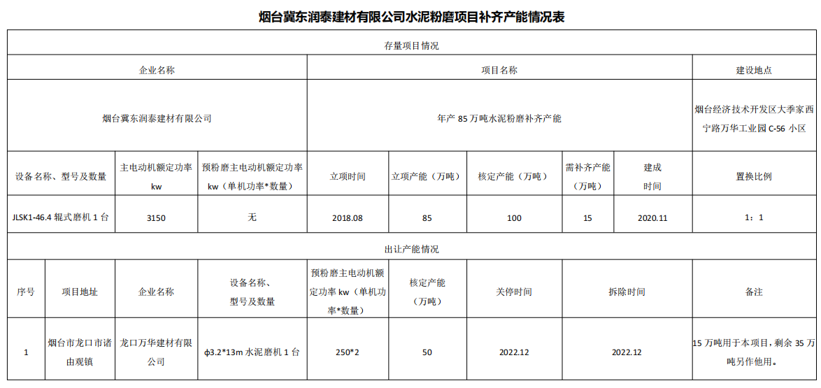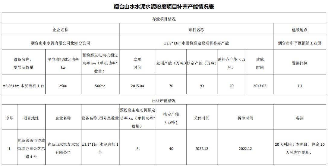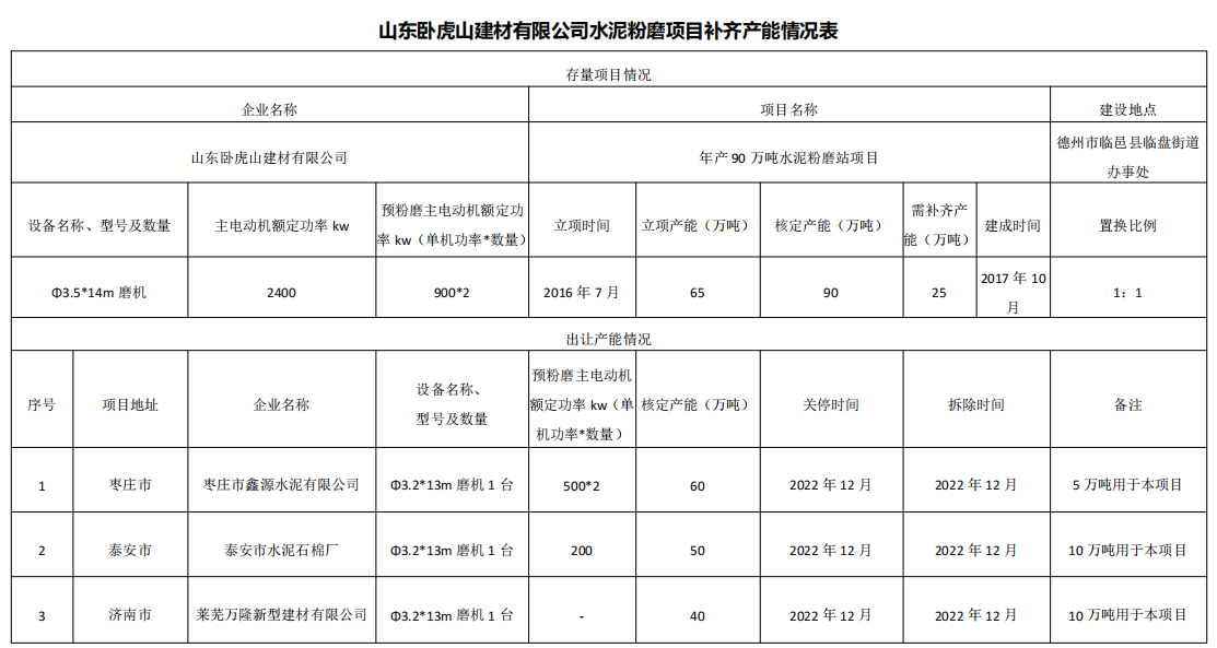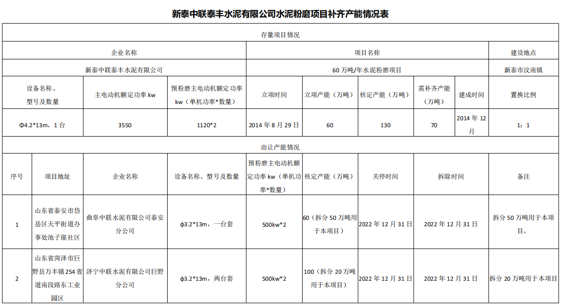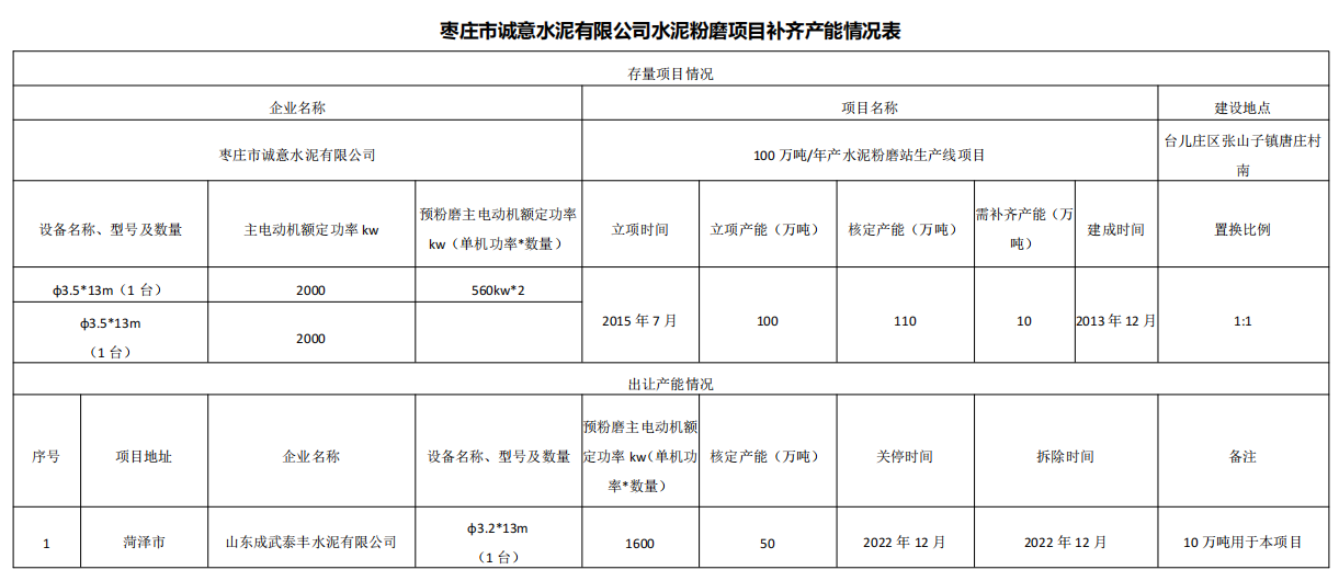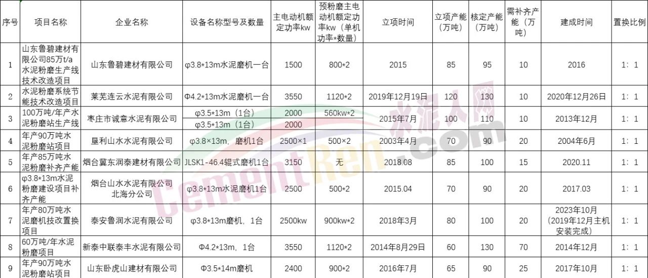 水泥人網(wǎng)注意到9個存量項目立項產(chǎn)能合計735萬噸/年,核定產(chǎn)能合計935萬噸/年,14個退出項目即需補充產(chǎn)能合計200萬噸/年。建成時間從2014年至2023年,補齊產(chǎn)能置換比例1:1。