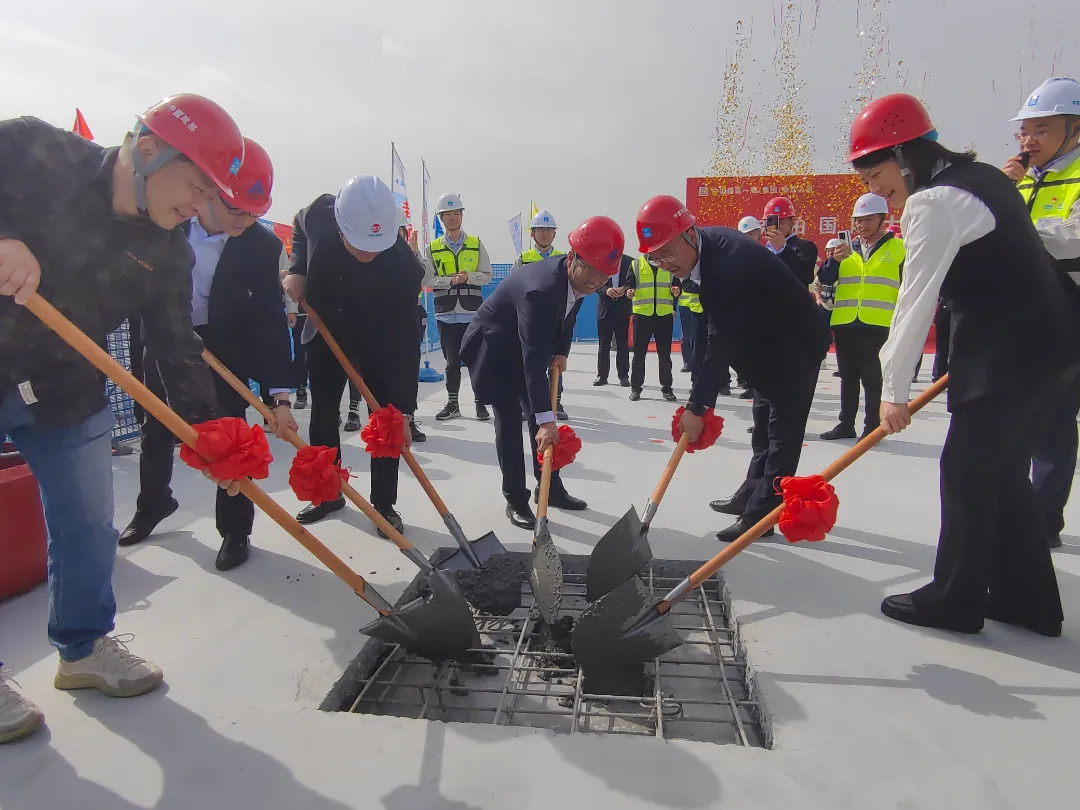 在公司、建設(shè)單位、監(jiān)理單位、設(shè)計單位領(lǐng)導(dǎo)共同澆筑最后一鍬混凝土后,宣布項目正式封頂。