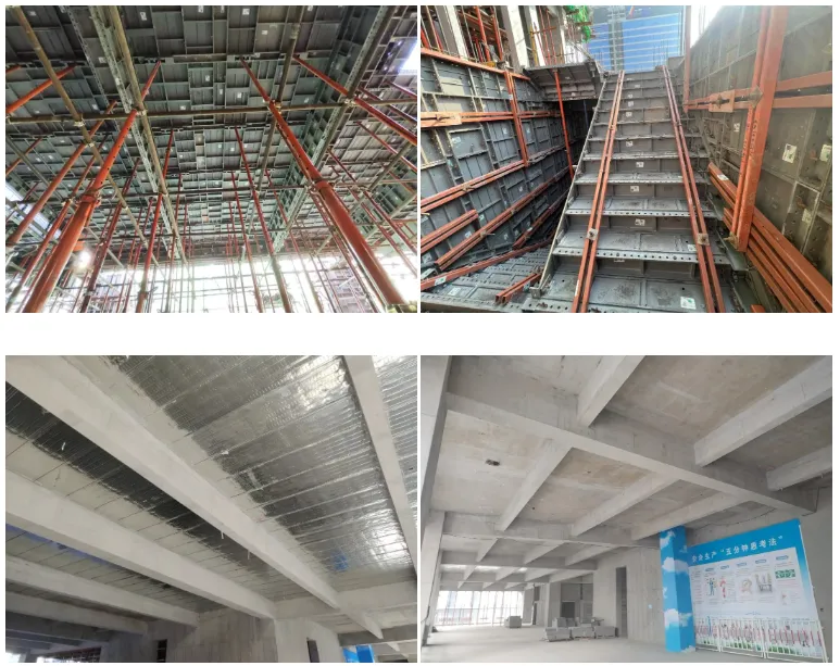 項目創(chuàng)新性鋁??觳痼w系全樓整體性應(yīng)用,即從負(fù)三層地下室到二十三層結(jié)構(gòu)全部使用鋁模。一舉打破傳統(tǒng)標(biāo)準(zhǔn)層才用鋁模的模式。通過多次深化模擬測算,該應(yīng)用,不僅極大節(jié)省工期,同時大大減少塔吊壓力,且混凝土成型質(zhì)量好,具有免修補(bǔ)打磨、不產(chǎn)生建筑垃圾、工完場清、節(jié)能減碳等優(yōu)點,助力碳中和。也為鋁模應(yīng)用創(chuàng)造出新的模式,為建筑行業(yè)提出新的綠色智慧建造方案。