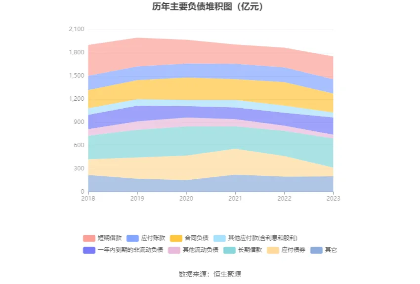 負(fù)債重大變化方面,截至2023年年末,公司應(yīng)付債券較上年末減少58.10%,占公司總資產(chǎn)比重下降5.29個(gè)百分點(diǎn);合同負(fù)債較上年末減少19.33%,占公司總資產(chǎn)比重下降1.70個(gè)百分點(diǎn);一年內(nèi)到期的非流動(dòng)負(fù)債較上年末增加33.94%,占公司總資產(chǎn)比重上升2.37個(gè)百分點(diǎn);長(zhǎng)期借款較上年末增加15.64%,占公司總資產(chǎn)比重上升2.41個(gè)百分點(diǎn)。