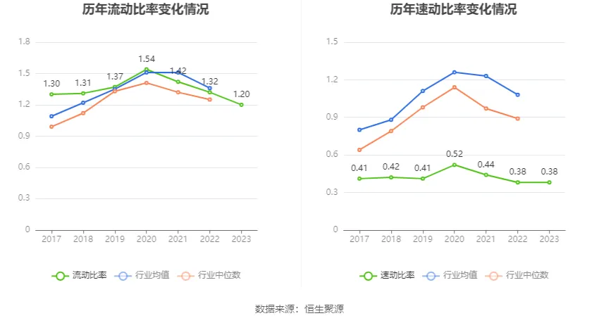 2023年,公司流動(dòng)比率為1.20,速動(dòng)比率為0.38。