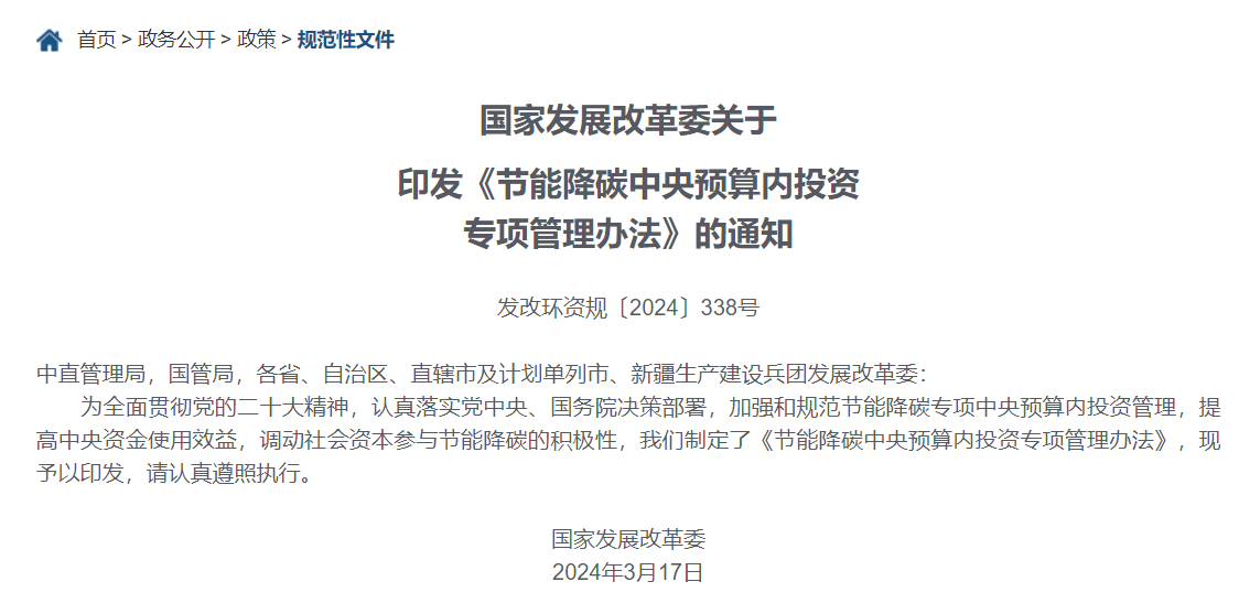 節(jié)能降碳中央預(yù)算內(nèi)投資專項(xiàng)管理辦法