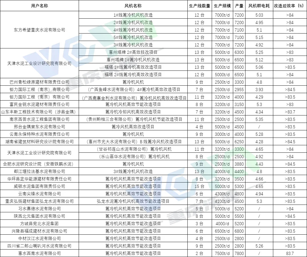 重慶沃亞篦冷機(jī)線風(fēng)機(jī)業(yè)績(jī)匯總