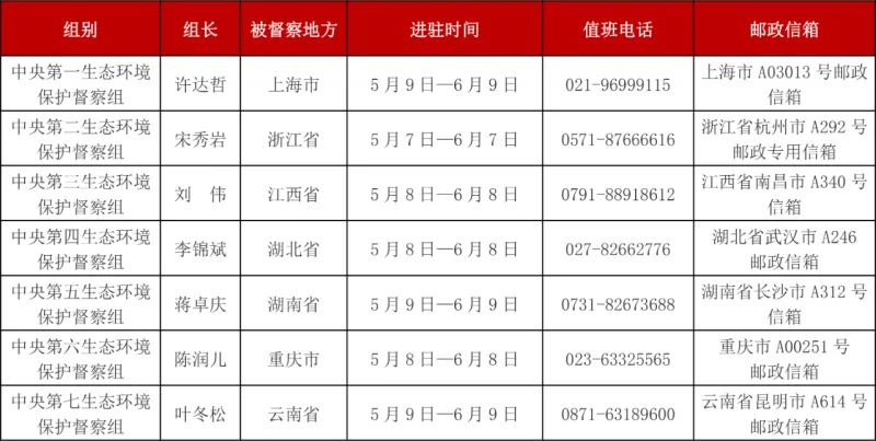 第三輪第二批中央生態(tài)環(huán)境保護督察進駐一覽表
