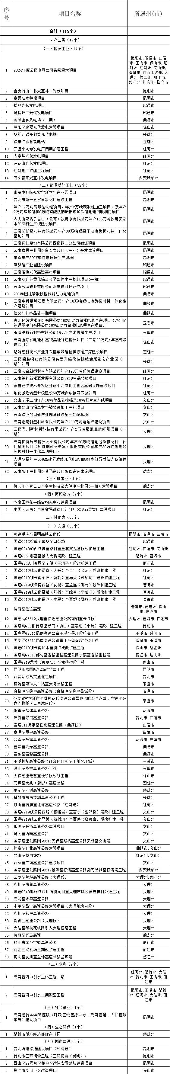 云南省2024年度省級重大項目清單