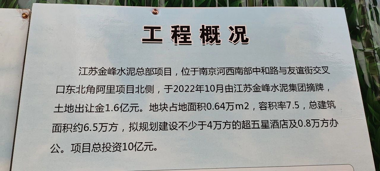 2022年9月,江蘇金峰水泥集團有限公司拿下河西南18-17號地塊,成交總價1.6億元。