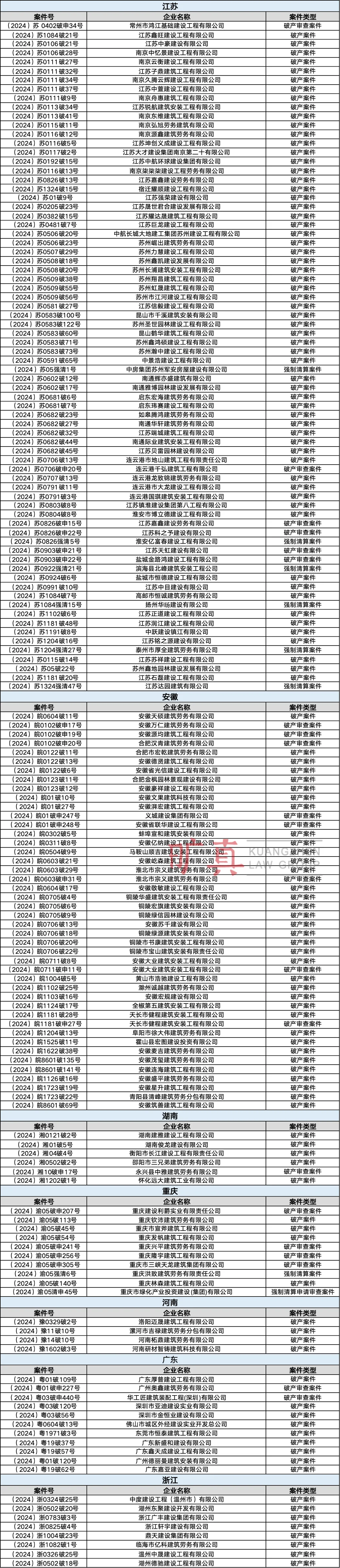 備注:此表為2024年5月1日~31日全國建筑企業(yè)破產(chǎn)重整案件信息匯總