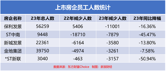 據(jù)不完全統(tǒng)計,93家A股及港股上市房企中,近70家企業(yè)在2023年員工人數(shù)銳減,其中保利發(fā)展2023年員工總數(shù)驟減11001人。