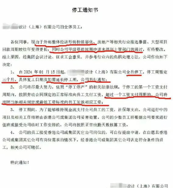 某設(shè)計院發(fā)停工通知要求全員停工,具體復(fù)工日期另行通知。