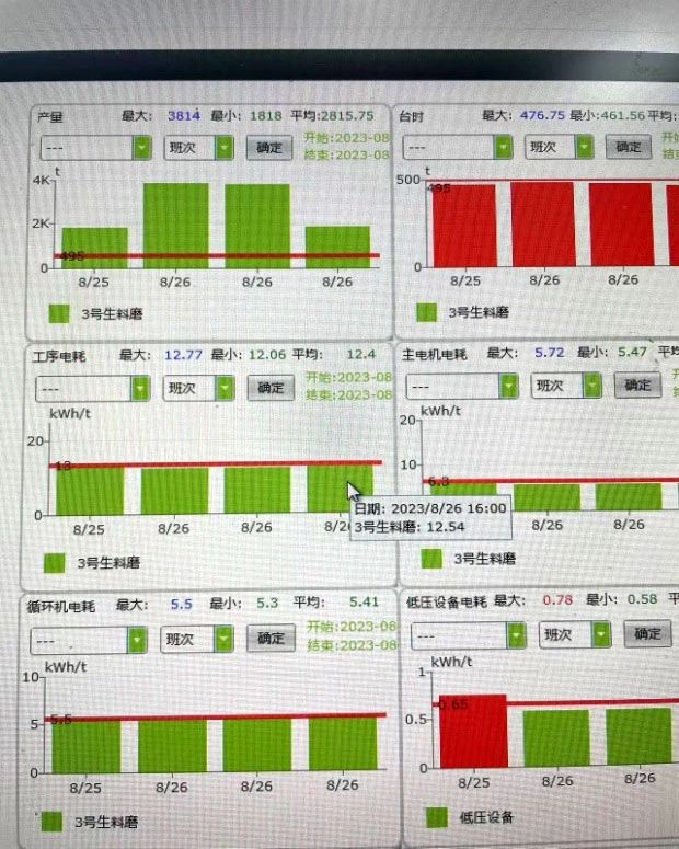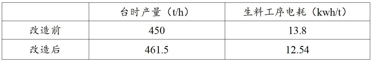 經(jīng)統(tǒng)計,系統(tǒng)臺時產(chǎn)量較改造前產(chǎn)量提升了11.5t/h,粉磨電耗較改造前降低了1.26kwh/t。改在后指標(biāo)對照如下: