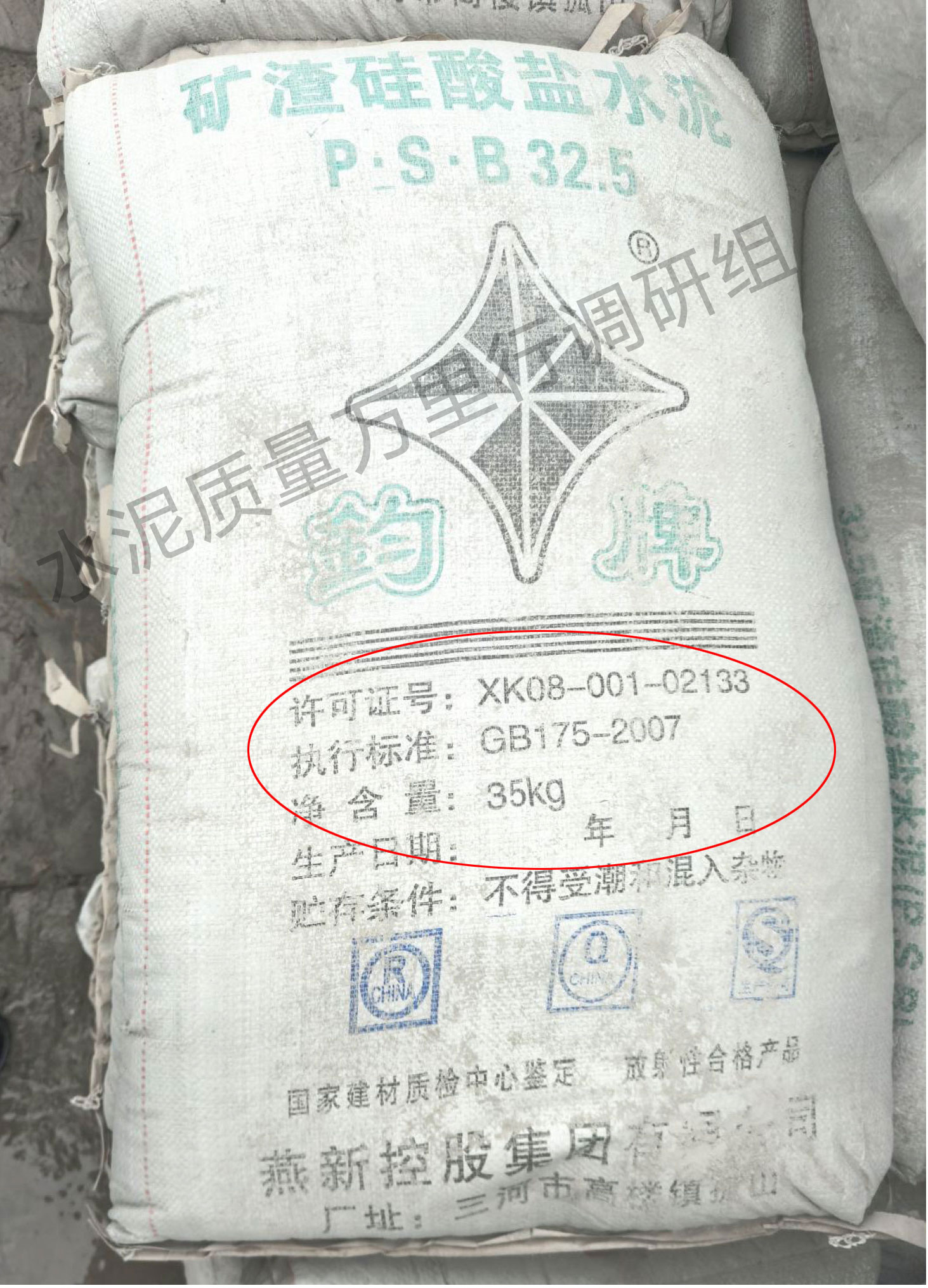 標(biāo)稱生產(chǎn)企業(yè)為燕新控股集團(tuán)有限公司的“鈞牌”水泥,印刷的許可證和執(zhí)行標(biāo)準(zhǔn)編號(hào)均已過(guò)期。公開渠道查詢得知,燕新控股集團(tuán)有限公司旗下生產(chǎn)許可證編號(hào)為XK08-001-02133,發(fā)證日期2019年5月8日,有效期至2023年3月20日。