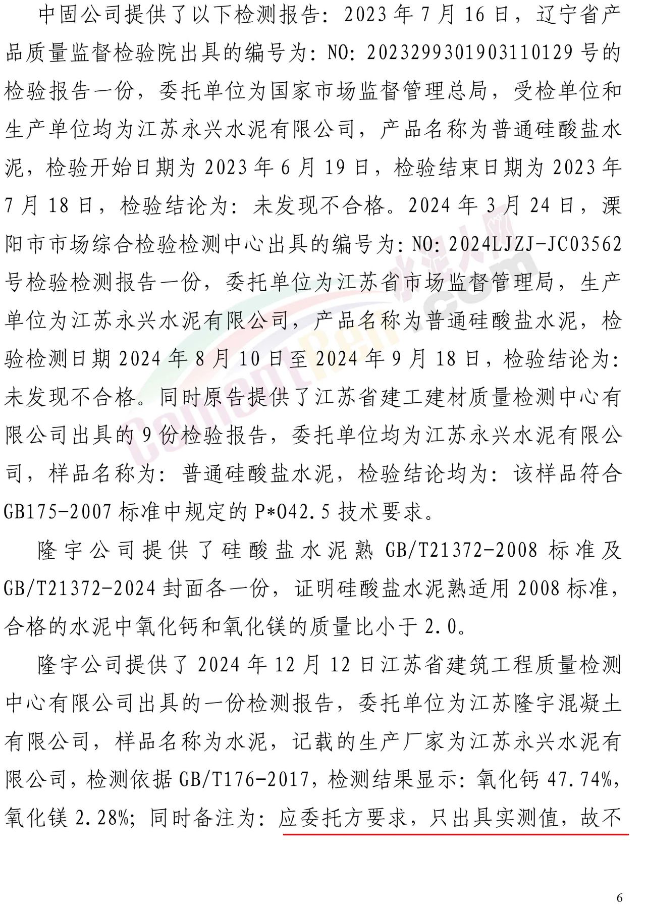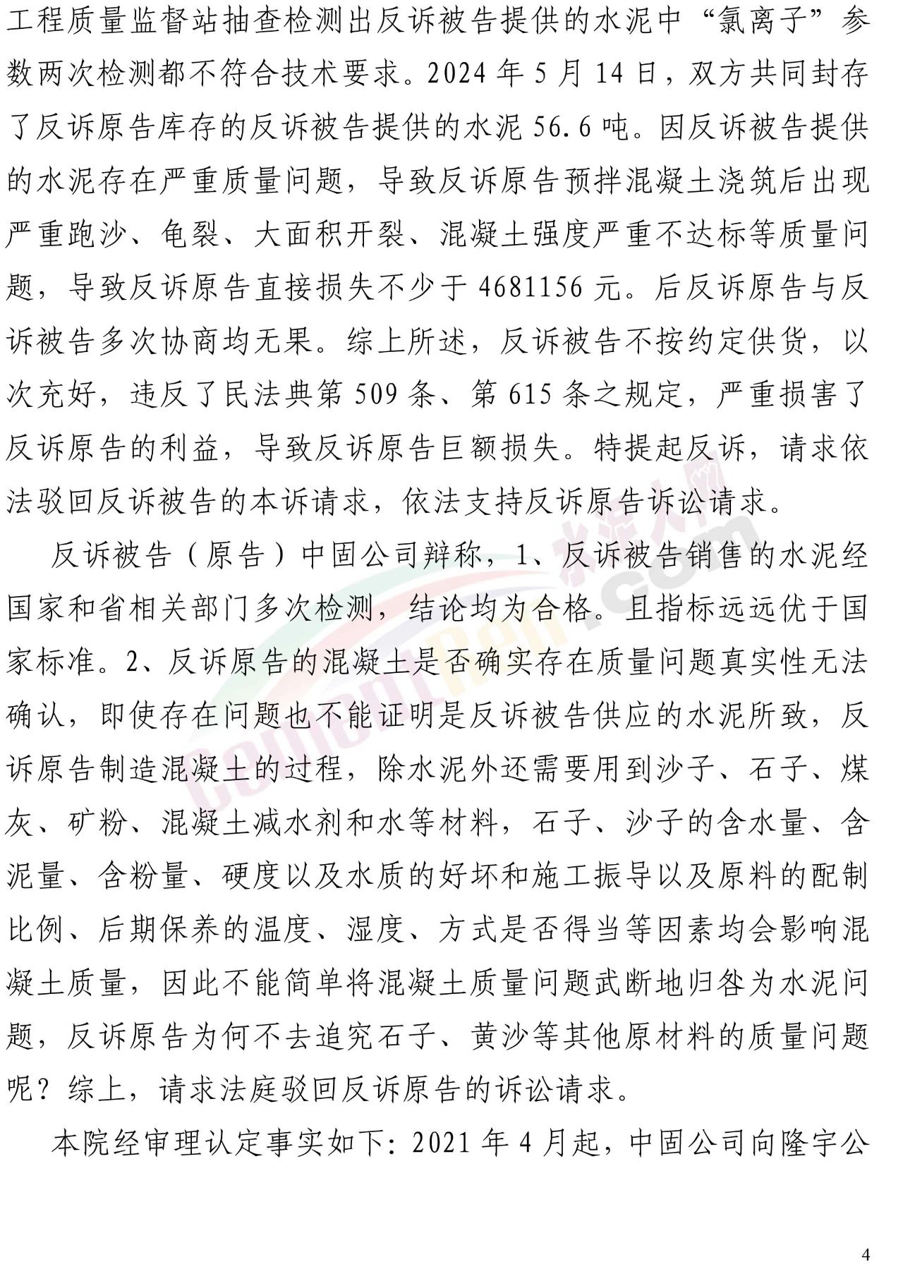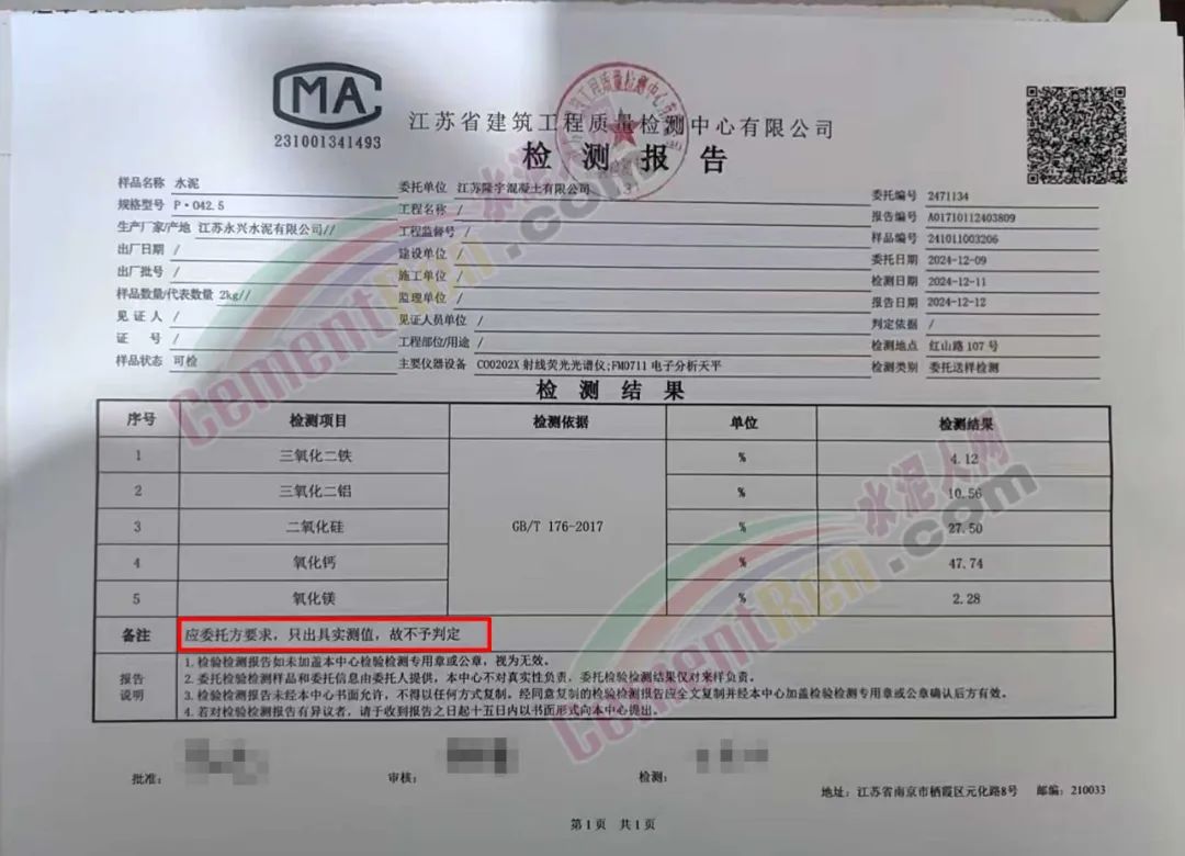 隆宇公司則提起反訴,堅(jiān)稱中固公司供應(yīng)的水泥存在嚴(yán)重質(zhì)量問題(氯離子超標(biāo)、強(qiáng)度不足),并提供了自己委托江蘇省建筑工程質(zhì)量檢測(cè)中心有限公司于2024年12月12日出具的檢測(cè)報(bào)告作為核心證據(jù)。然而,這份報(bào)告成為其敗訴的關(guān)鍵伏筆。