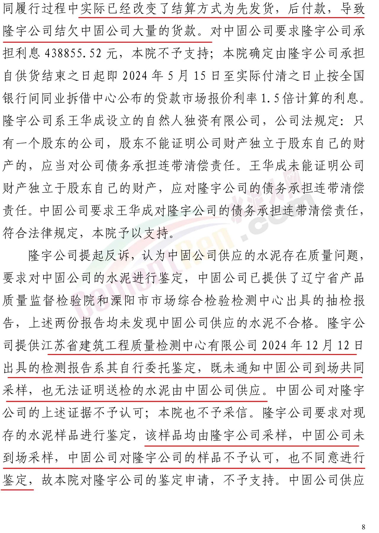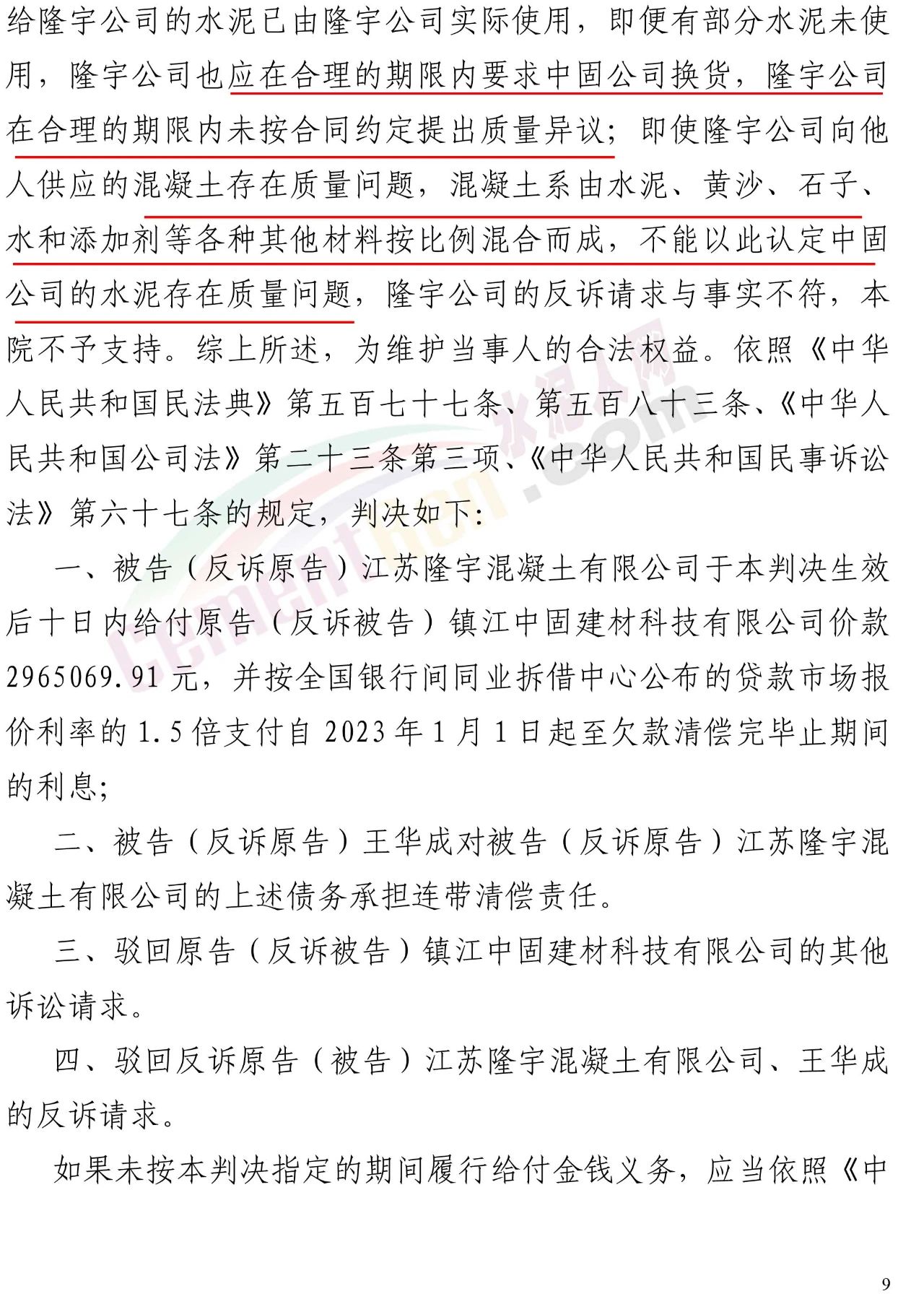 鎮(zhèn)江中固建材科技有限公司(以下簡(jiǎn)稱中固公司)與江蘇隆宇混凝土有限公司(以下簡(jiǎn)稱隆宇公司)這場(chǎng)曠日持久的“水泥質(zhì)量大戰(zhàn)”,最終以戲劇性反轉(zhuǎn)落幕。手握多份檢測(cè)報(bào)告、指控供應(yīng)商水泥氯離子超標(biāo)、強(qiáng)度不足并索賠474.8萬(wàn)元的隆宇公司,不僅反訴請(qǐng)求被全部駁回,更被判令支付拖欠中固公司的296.5萬(wàn)元貨款及相應(yīng)利息。反轉(zhuǎn)的核心,正是那些曾經(jīng)被隆宇公司視為“鐵證”的檢測(cè)報(bào)告。